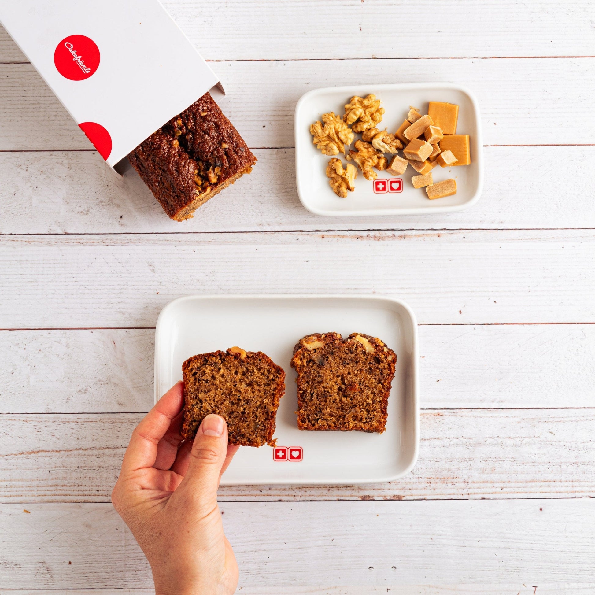 Buttriger Karamellkuchen mit knackigen Baumnüssen – süss, nussig und unwiderstehlich. Eine elegante Kombination, die jeden Gaumen verwöhnt. Hausgemacht mit feinstem Caramel.
